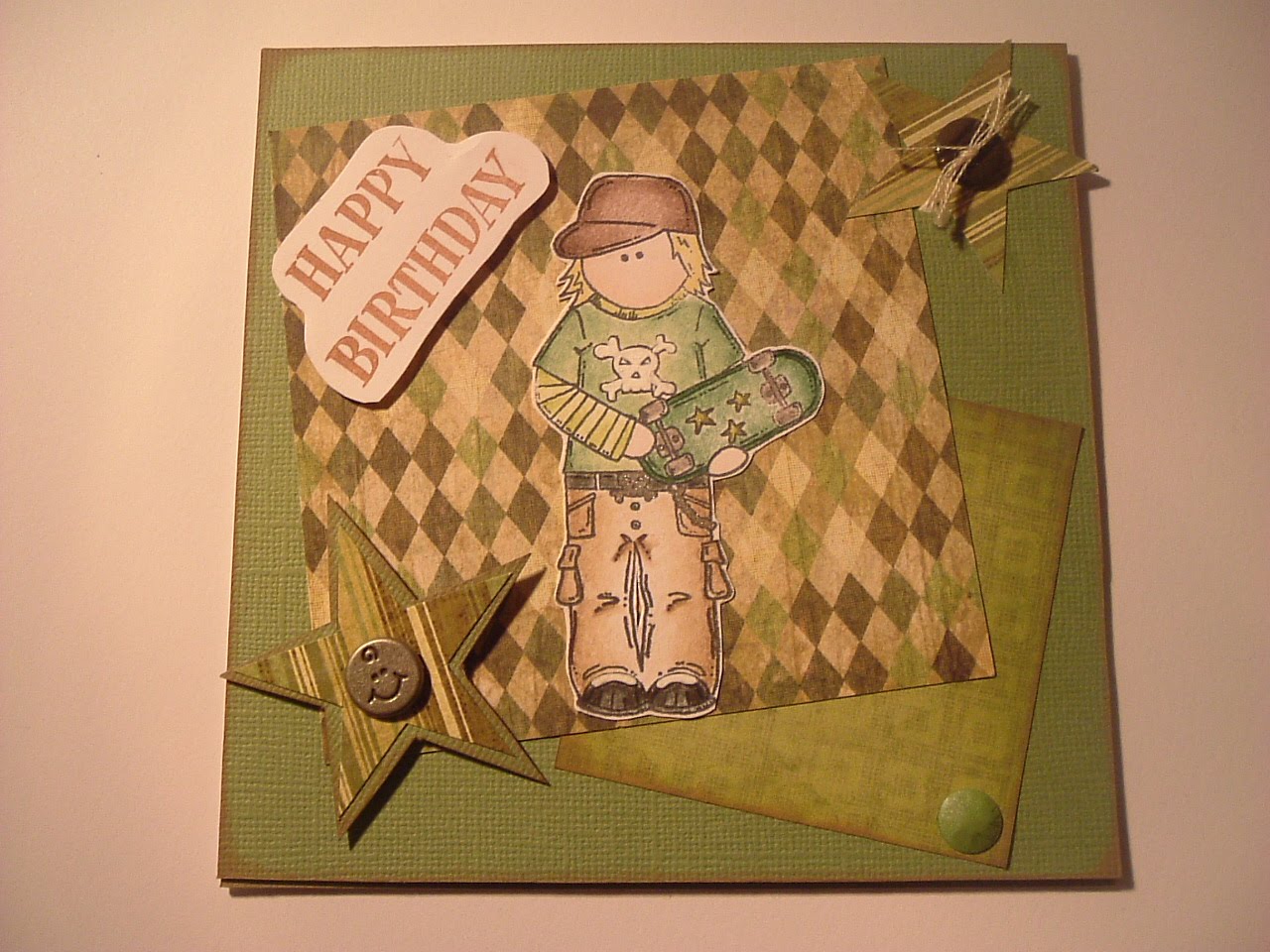 - Embellishments - Stars made freehand, buttons from stash, Green Card Candy, metal brad from Ann-marie's stash